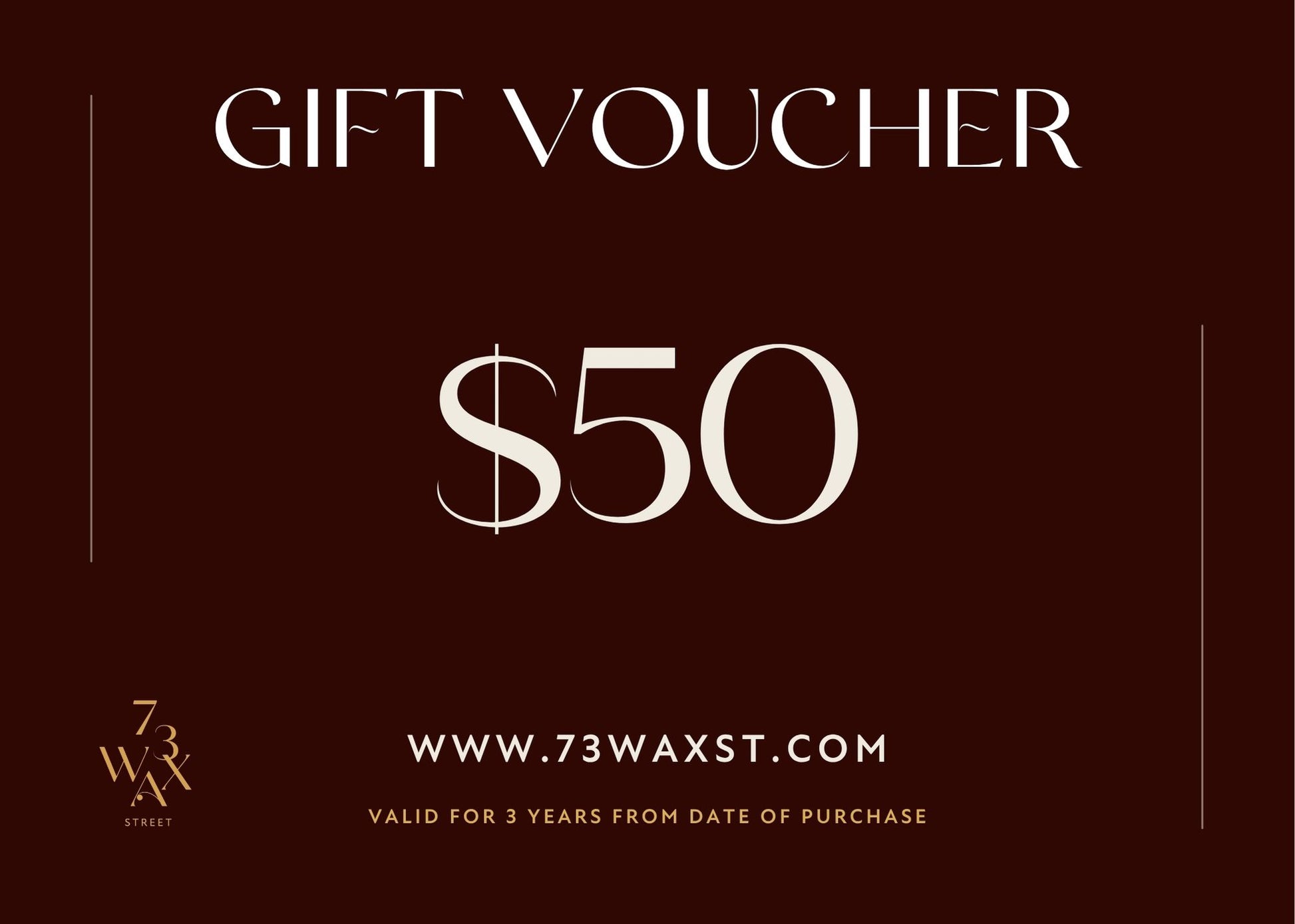 73 Wax St Digital Gift Cards are delivered instantly by email and contain a unique code for online redemption at checkout.